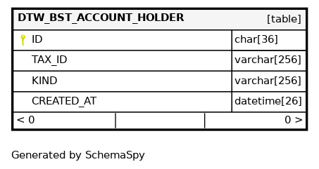 | DTW_BST_ACCOUNT_HOLDER_NAT_ID | Must be unique | Asc/Asc | TAX_ID + KIND |
