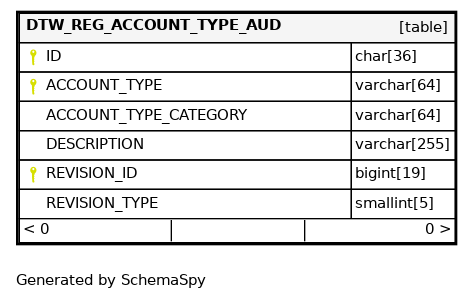 | DTW_REG_ACC_TYPE_AUD_NID_IDX | Must be unique | Asc/Asc | REVISION_ID + ACCOUNT_TYPE |