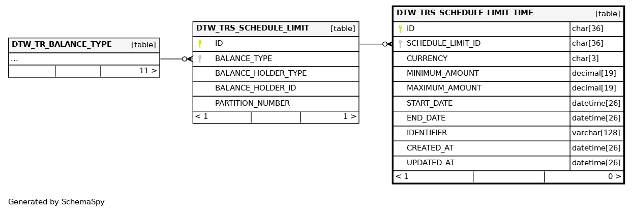 | DTW_TRS_SCHEDULE_LIMIT_TIME_IDX | Must be unique | Asc/Asc/Asc/Asc | START_DATE + END_DATE + IDENTIFIER + SCHEDULE_LIMIT_ID |