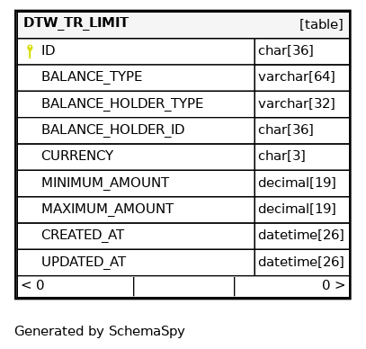| DTW_TR_LIMIT_NATURAL_IDX | Must be unique | Asc/Asc/Asc | BALANCE_HOLDER_ID + BALANCE_TYPE + BALANCE_HOLDER_TYPE |